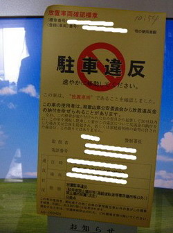 落ち着いて見たら、『放置車両確認標章』って書いてあります。
