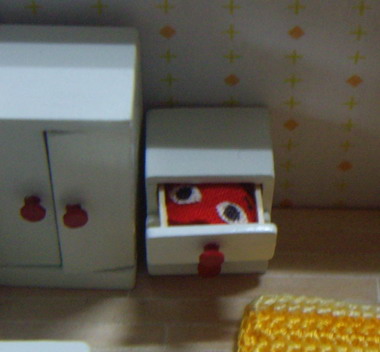 ほんで、脱いだ着ぐるみは洋服ダンスに直します。