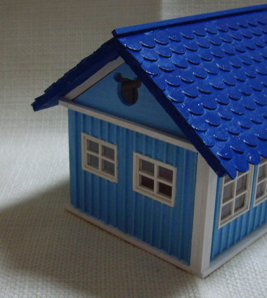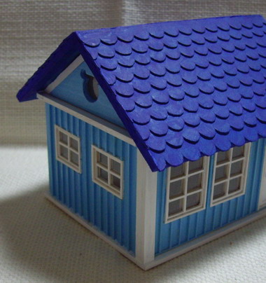 屋根の色は青にしたいと思ってたので青色を塗ってみたんやけど